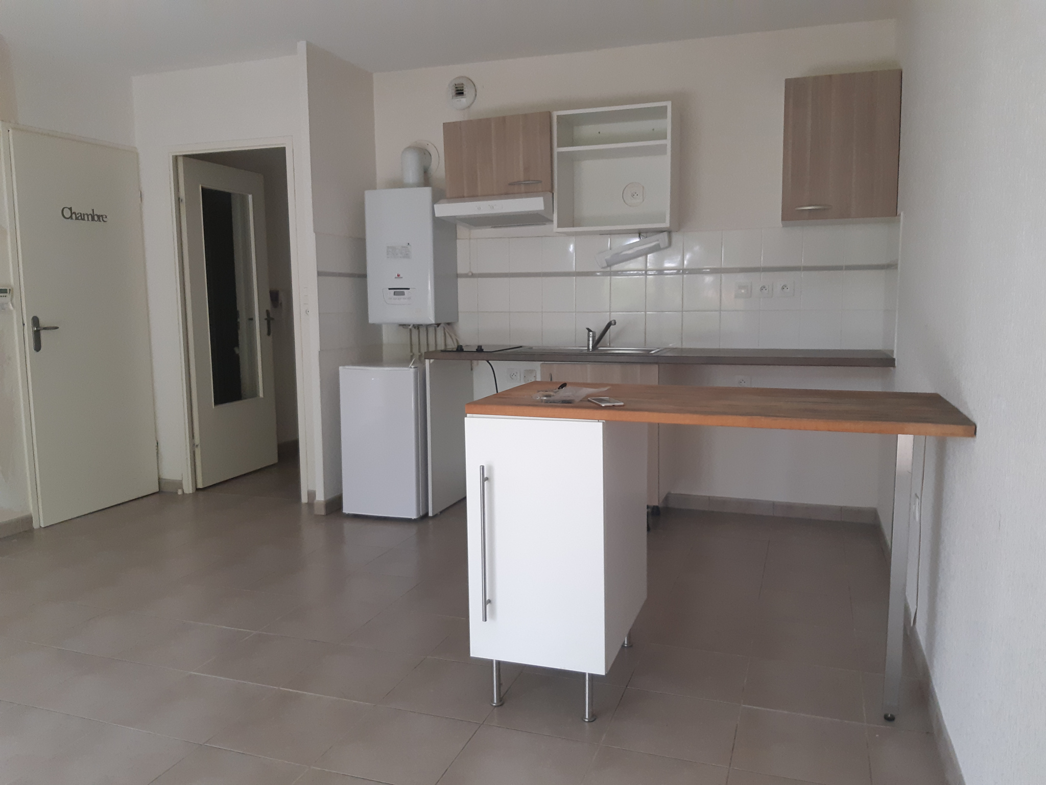 Comprenant une cuisine américaine donnant sur un séjour lumineux, une chambre avec placard, une salle de bain avec WC et un cellier.